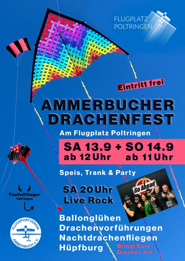 Wir laden euch herzlich zu unserem Drachenfest am Flugplatz Poltringen ein! Am 13. September ab 12 Uhr und am 14. September ab 11 Uhr. Kommt vorbei und feiert mit uns.